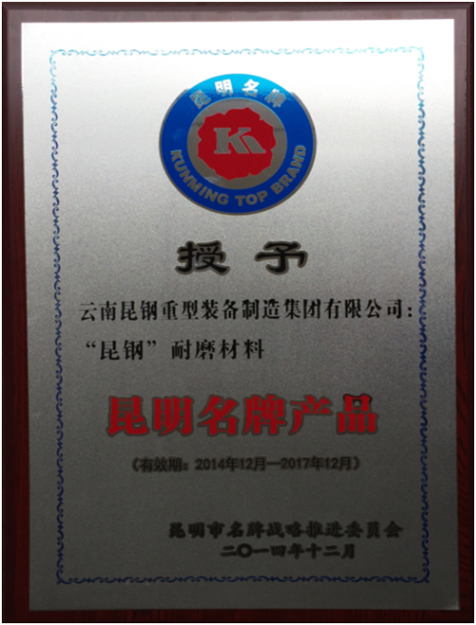 As the first wear resistant material producer listed on “new three board” in China, stock code 831212, Yunnan Kungang Wear Resistant Material Science Co.,Ltd. implements the market transaction. The company has obtained the ISO9001 quality system certificate, ISO14001 environmental management system certificate, national high-tech enterprise certificate, Yunnan high-tech enterprise certificate,Yunnan brand product certificate, China foundry association membership certificate. The company has found Yuxi Wear-resisting material of science and technology research center and won honners,such as the high quality casting gold medal the first prize of Yunnan science and technology invention and so on.